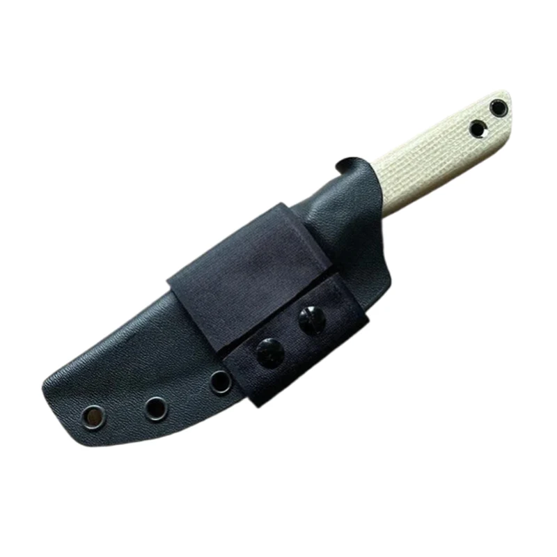 Se vuoi portare il coltello un po' più in basso, ti consiglio una cinghia in nylon con supporto Kydex. I passanti in velcro o in pelle sono ideali per trasportare il coltello sulla cintura. Il velcro è anche una pratica soluzione per fissare il coltello alla tracolla dello zaino. Oltre al fodero in Kydex, posso attaccare un supporto per fire steel, opzionalmente con fire steel (lungo 80 mm).