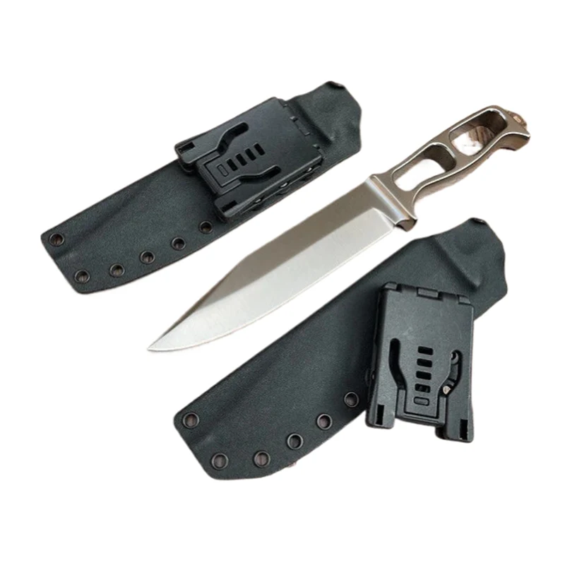 Fodero in Kydex per il coltello da campeggio. La fondina Kydex è disponibile con occhielli su un lato e occhielli su entrambi i lati.