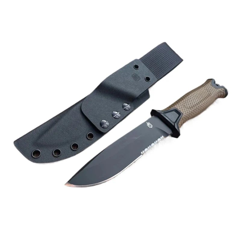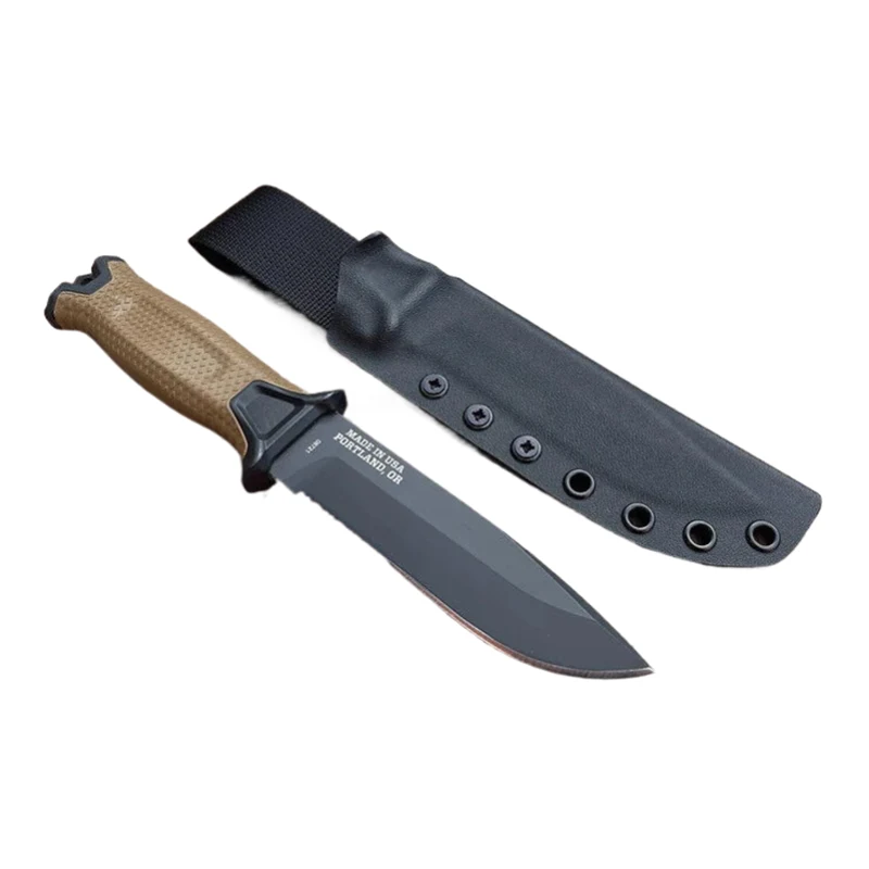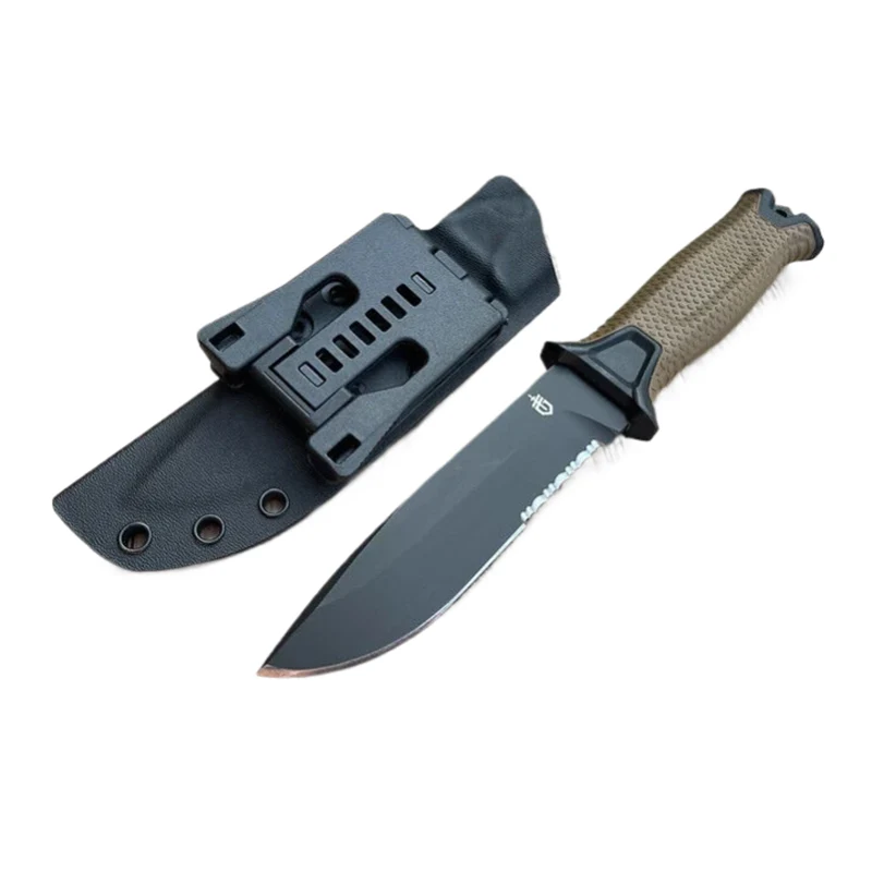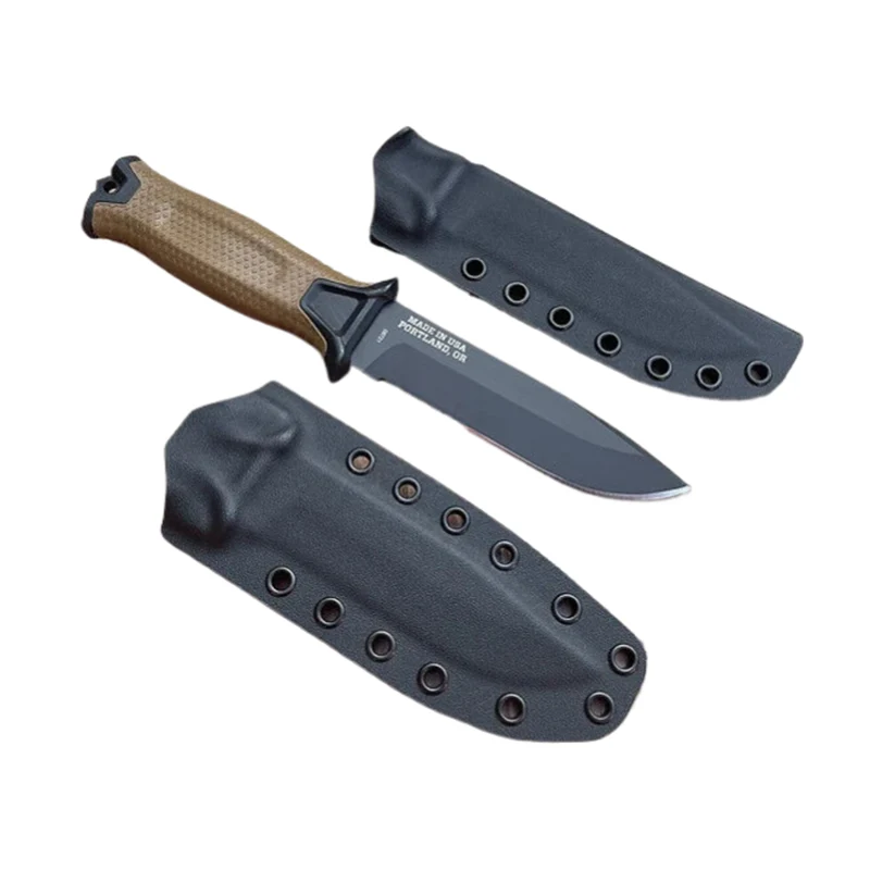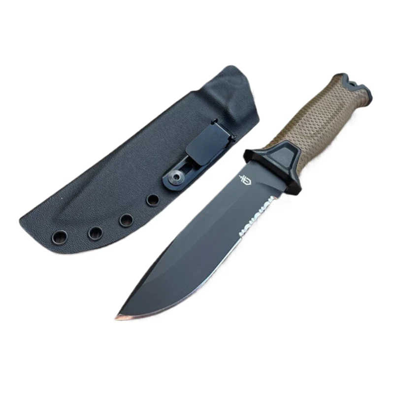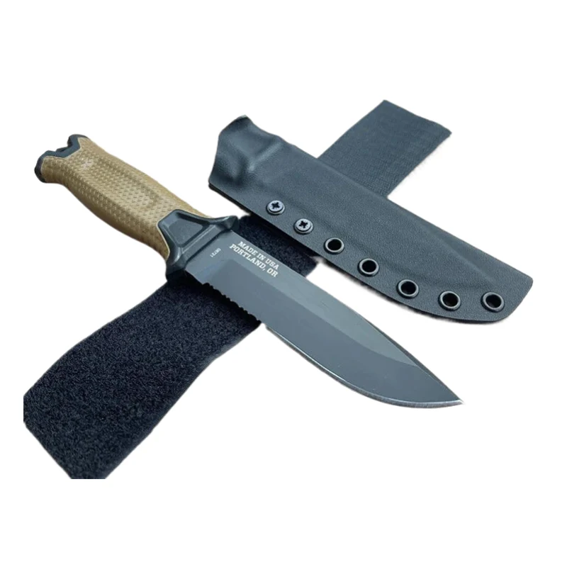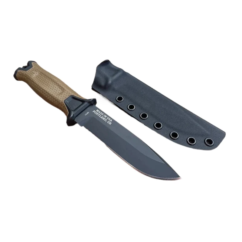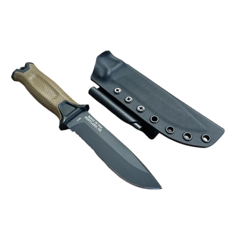Coltello tattico a lama fissa Bushcraft per caccia all'aperto, campeggio, sopravvivenza, con fodero in Kydex.
